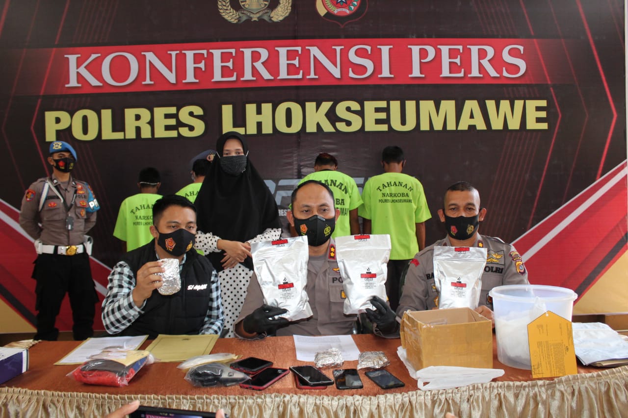 Kapolres Lhokseumawe AKBP Eko Hartanto SIK MH dalam konferensi pers yang berlangsung di gedung serbaguna Wira Satya Mapolres Lhokseumawe, Jumat (23/4/2021) mengatakan, tersangka yang dibekuk berinisial NS (29) warga Kecamatan Banda Sakti, Kota Lhokseumawe pekerjaan Wiraswasta.