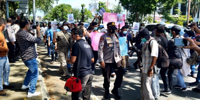 Dengan dikawal personel Polres Lhokseumawe, kata Salman, dalam aksi damai ini yang menjadi koordinator adalah Zaki Mubarak. Dengan memakai pengeras suara, peserta aksi menyampaikan sejumlah poin saat berorasi sambil melakukan long march.