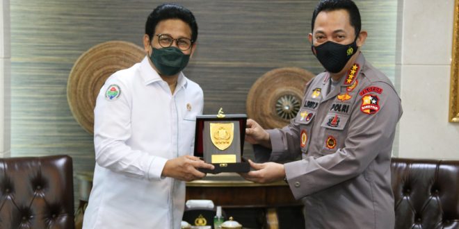 JAKARTA – Kapolri Jenderal Listyo Sigit Prabowo menerima audiensi Menteri Desa, Pembangunan Daerah Tertinggal, dan Transmigrasi (Mendes PDTT) Abdul Halim Iskandar, di Mabes Polri, Jakarta Selatan, Selasa (25/5/2021).