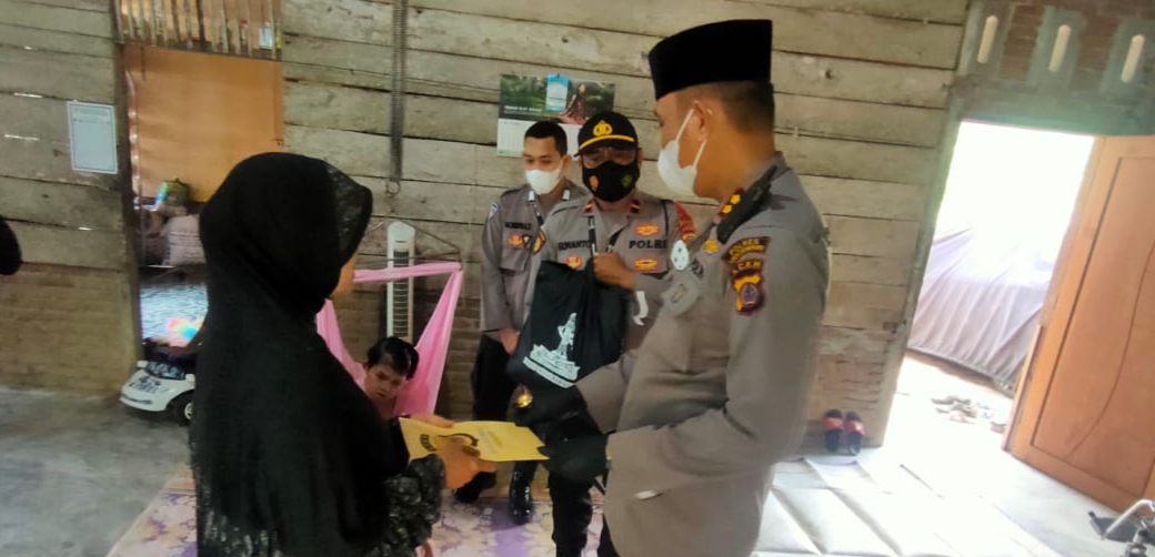 LHOKSEUMAWE – Kapolres Lhokseumawe AKBP Eko Hartanto SIK MH menyambangi kediaman penderita sakit lumpuh layu di Gampong Babah Buloh, Kecamatan Sawang, Aceh Utara, wilayah hukum Polres Lhokseumawe, Kamis (6/5/2021).