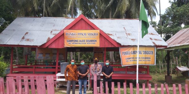 LHOKSEUMAWE – Kapolsek Meurah Mulia, Ipda Sirya Iqbal mengecek posko Pemberlakuan Pembatasan Kegiatan Masyarakat (PPKM) Mikro di sejumlah gampong di Kecamatan Meurah Mulia, Aceh Utara, Rabu (26/5/2021).