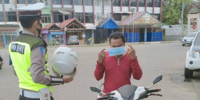 LHOKSEUMAWE – Dalam rangka memutus mata rantai penyebaran Covid-19 dan Ops Ketupat Seulawah 2021, Polantas Lhokseumawe membagikan masker kepada pengguna jalan di depan Pos Lantas Cunda Kota Lhokseumawe, Jumat (7/5/2021).