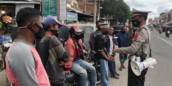 LHOKSEUMAWE – Polantas Lhokseumawe Meupep-pep (sosialisasi) tentang himbauan larangan mudik hari raya Idul Fitri 1442 H di seputaran wilayah hukum Polres Lhokseumawe, Kamis (6/5/2021).