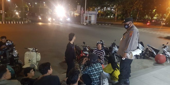 LHOKSEUMAWE – Personel Polsek Banda Sakti melakukan patroli dialogis dengan mendatangi para remaja sedang nongkrong di kawasan Kota Lhokseumawe dalam kegiatan itu personel mengimbau agar remaja tersebut tidak main petasan, Selasa (4/5/2021) malam.