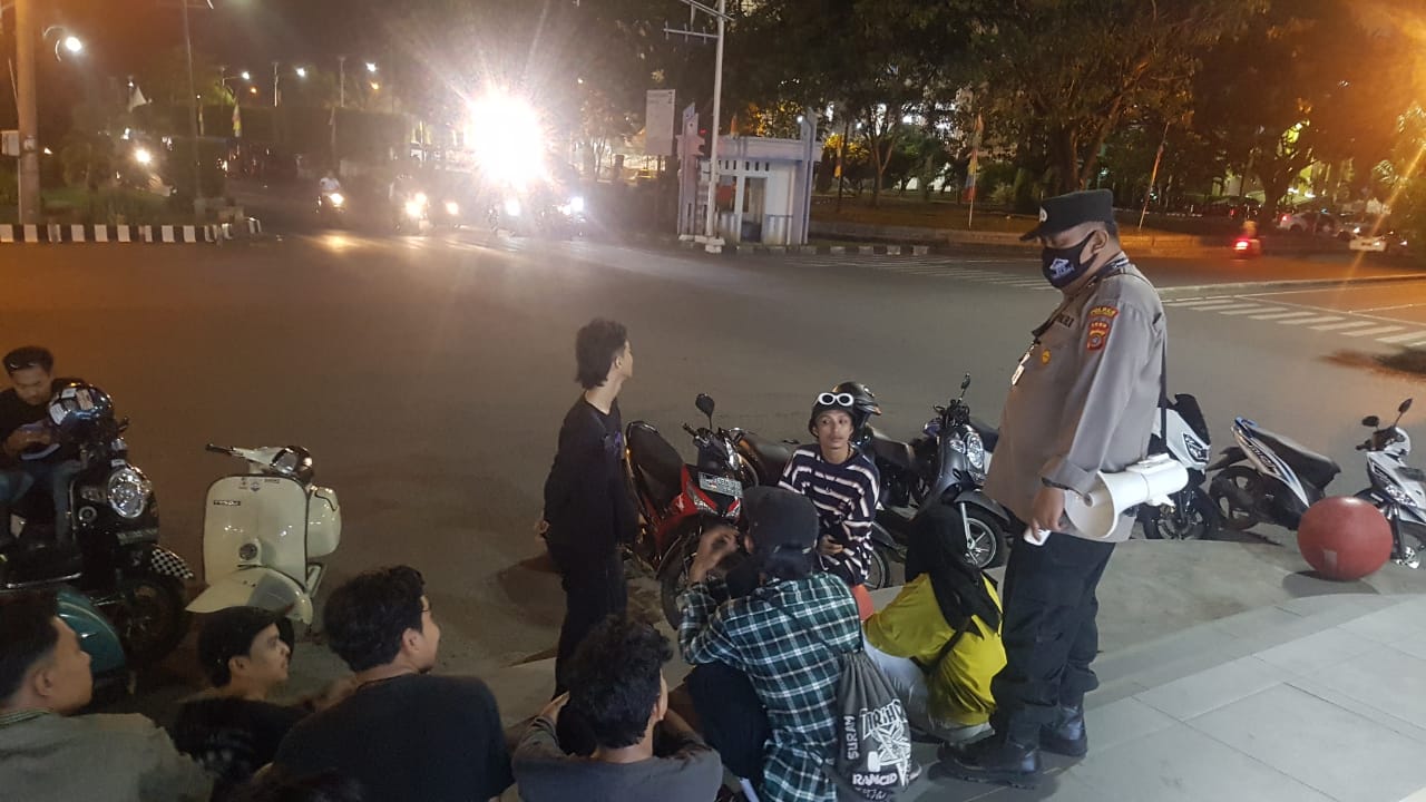 LHOKSEUMAWE – Personel Polsek Banda Sakti melakukan patroli dialogis dengan mendatangi para remaja sedang nongkrong di kawasan Kota Lhokseumawe dalam kegiatan itu personel mengimbau agar remaja tersebut tidak main petasan, Selasa (4/5/2021) malam.