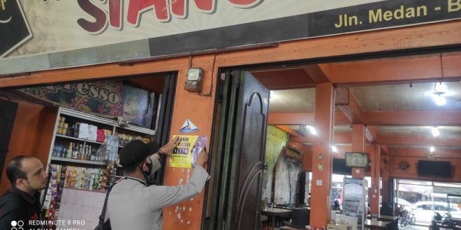 LHOKSEUMAWE – Guna mendukung program Kapolri dalam rangka memberi pelayanan prima kepada masyarakat, personel Polsek Muara Batu, Polres Lhokseumawe menempelkan stiker Call Center Polri 110 di sejumlah warkop dan fasilitas umum, Rabu (19/5/2021).