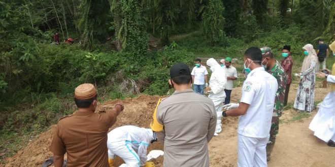 “Personel mengamankan proses pemakaman dan mengimbau masyarakat yang hadir menjaga jarak minimal satu meter serta tetap memakai masker,” ujarnya.