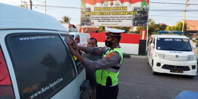 LHOKSEUMAWE – Polantas Lhokseumawe menempelkan stiker layanan kepolisian 110 pada kendaraan umum, kegiatan tersebut berlangsung di Mapolres Lhokseumawe, Jumat (21/5/2021).