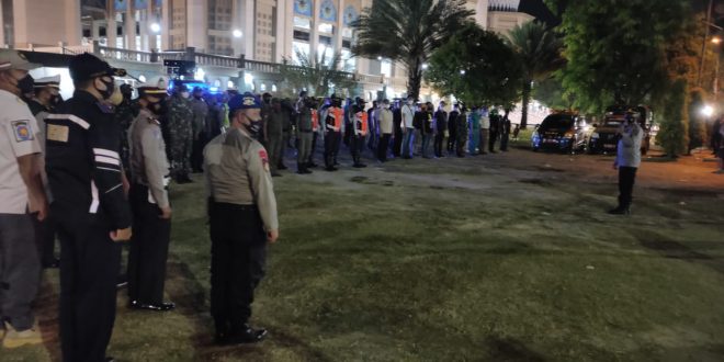 LHOKSEUMAWE – Polres Lhokseumawe bersama tim gabungan melaksakan kegiatan sosialisasi protokol kesehatan dan himbauan batas waktu kegiatan masyarakat di seputaran Kota Lhokseumawe, Minggu (16/5/2021) malam.