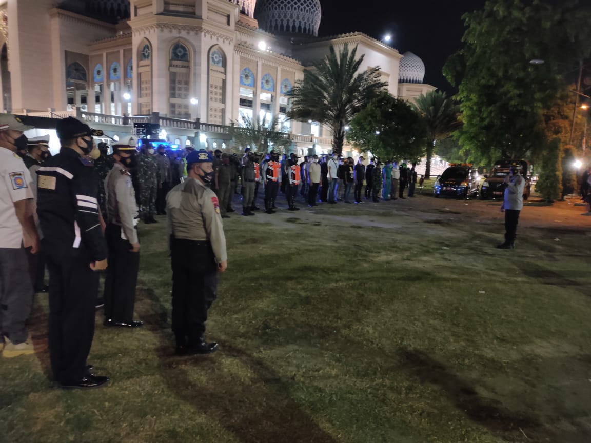 LHOKSEUMAWE – Polres Lhokseumawe bersama tim gabungan melaksakan kegiatan sosialisasi protokol kesehatan dan himbauan batas waktu kegiatan masyarakat di seputaran Kota Lhokseumawe, Minggu (16/5/2021) malam.