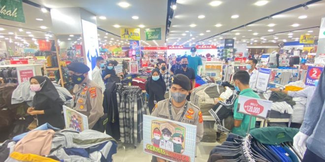 LHOKSEUMAWE – Polres Lhokseumawe kembali mengecek penerapan protokol kesehatan (prokes) di pusat perbelanjaan Suzuya Mall Kota Lhokseumawe, Minggu (9/5/2021).