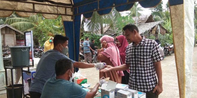 LHOKSEUMAWE – Polsek Kuta Makmur, Polres Lhokseumawe mengecek penerapan protokol kesehatan (prokes) pada acara pemilihan kepala desa atau Keuchik Gampong Pulo Barat, Kuta Makmur, Aceh Utara, Kamis (27/5/2021).