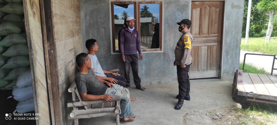 LHOKSEUMAWE – Polsek Muara Batu, Polres Lhokseumawe gelar patroli dialogis sosialisasi protokol kesehatan kepada masyarakat di Gampong Kuala Dua, Kecamatan Muara Batu, Aceh Utara, Senin (3/5/2021).