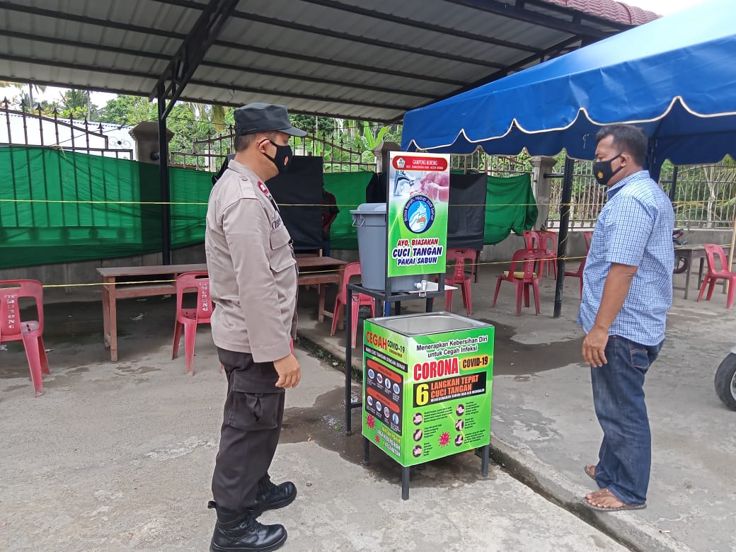 LHOKSEUMAWE – Polsek Samudera melakukan pengecekan sarana protokol kesehatan (prokes) menjelang pemilihan kepala desa (Pilkades) di Gampong Murong, Kecamatan Samudera, Aceh Utara, Rabu (26/5/2021).