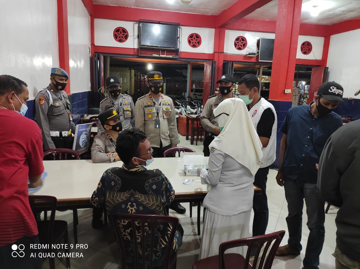 LHOKSEUMAWE – Jajaran Polsek Zona Barat Polres Lhokseumawe melaksanakan kegiatan Ops Yustisi pendisiplinan masyarakat terhadap protokol kesehatan, Jumat (28/5/2021) malam. Dalam kegiatan ini, sebanyak 15 pelanggar diswab antigen.