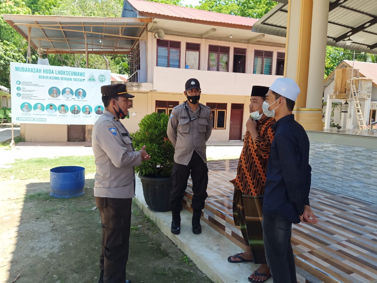 LHOKSEUMAWE – Sat Binmas Polres Lhokseumawe melakukan sosialisasi dan himbauan protokol kesehatan kepada pengurus masjid dan dayah di wilayah hukum Polres Lhokseumawe, Minggu (23/5/2021).