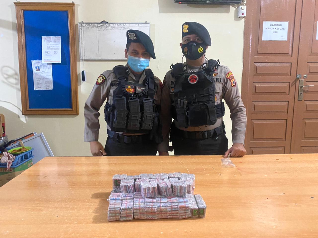 LHOKSEUMAWE – Tim Unit Reaksi Cepat (URC) Siagam Sat Sabhara Polres Lhokseumawe mengamankan ratusan butir petasan cabe dari pedagang kaki lima di jalan Perdagangan, Kecamatan Banda Sakti, Kota Lhokseumawe, Selasa (4/5/2021) malam.