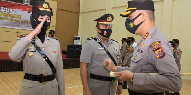 LHOKSEUMAWE – Kapolres Lhokseumawe AKBP Eko Hartanto, S.I.K, M.H pimpin upacara serah terima jabatan Kasat Lantas Polres Lhokseumawe di Gedung Serba Guna Wirasatya Polres Lhokseumawe.” senin pagi (14/06/2021).