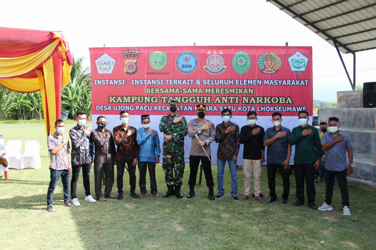 LHOKSEUMAWE – Keuchik Gampong Ujong Pacu, Kec. Muara Satu, Kota Lhokseumawe, Samsul Bahri mengucapkan terima kasih kepada Kapolres Lhokseumawe, AKBP Eko Hartanto SIK MH yang telah meresmikan gampong tersebut sebagai Kampung Tangguh Anti Narkoba atau Bersih tanpa Narkoba (Bersinar).