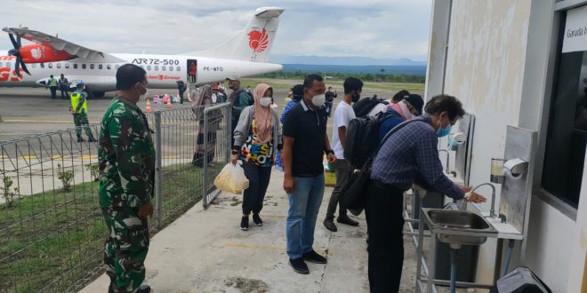 “Penumpang yang baru saja tiba diarahkan untuk mencuci tangan sebelum memasuki area check poin. Jumlah penumpang yang berangkat 56 dan ketibaan sebanyak 61 orang, sedangkan yang diswab antigen tiga orang dengan hasil negatif,” ujarnya.