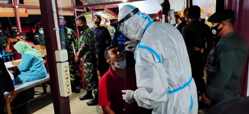 LHOKSEUMAWE – Polres Lhokseumawe bersama tim gabungan melaksakan Operasi Yustisi dan Pemberlakuan Pembatasan Kegiatan Masyarakat (PPKM) di seputaran Kota Lhokseumawe, Minggu (13/6/2021), dalam kegiatan ini sebanyak 14 pelanggar diswab antigen.