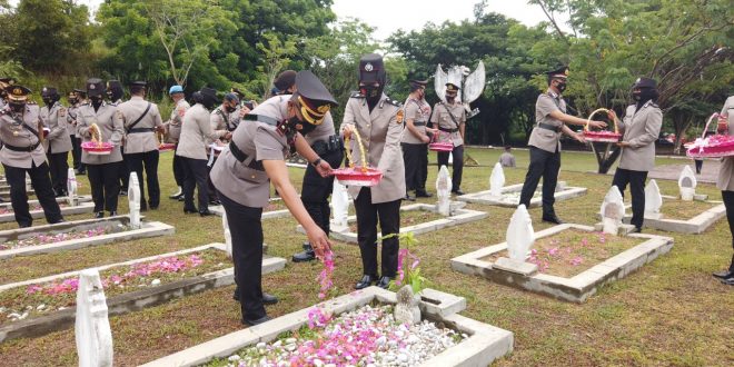 LHOKSEUMAWE – Kapolres Lhokseumawe AKBP Eko Hartanto SIK MH ziarah dan tabur bunga di Taman Makam Pahlawan (TMP) Blang Panyang, Kec. Muara Satu, Kota Lhokseumawe, Selasa (29/6/2021), kegiatan tersebut dalam rangka memperingati HUT Bhayangkara ke-75.