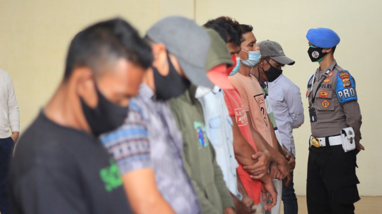Kapolres Lhokseumawe AKBP Eko Hartanto SIK MH melalui Wakapolres Kompol Raja Gunawan dalam konferensi pers di gedung serbaguna Wira Satya Mapolres Lhokseumawe, Kamis (17/6/2021) mengatakan, ke tujuh pelaku yang ditangkap itu masing-masing berinisial FS (41), SF (25), MN (35), RB (41), RA (39), MH (57) dan SR (56), semuanya merupakan warga Kota Lhokseumawe.