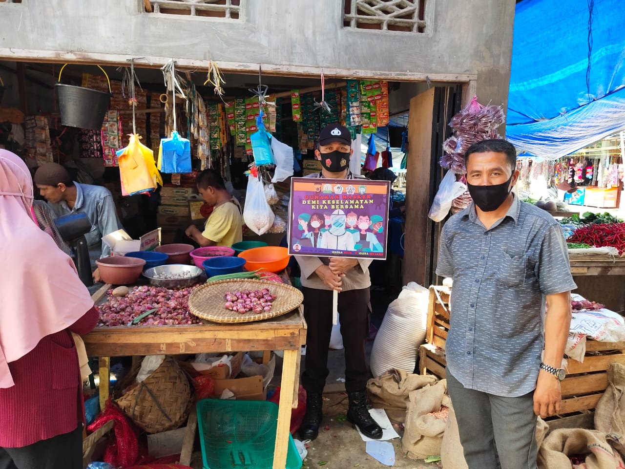 LHOKSEUMAWE – Personil Polsek Blang Mangat terus mensosialisasikan protokol kesehatan (Prokes) di wilayah hukumnya. Bahkan, untuk memaksimalkan kegiatan tersebut, personel juga membawa alat peraga, Selasa (1/6/2021).