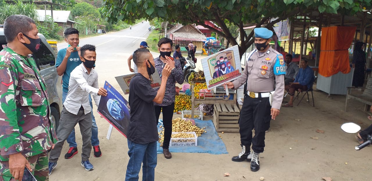 LHOKSEUMAWE – Personel Polsek Nisam melaksanakan kegiatan sosialisasi protokol kesehatan di wikayah hukum Polsek Nisam, dalam kegiatan itu personel mengingatkan masyarakat agar tidak berkerumun, Selasa (1/6/2021).