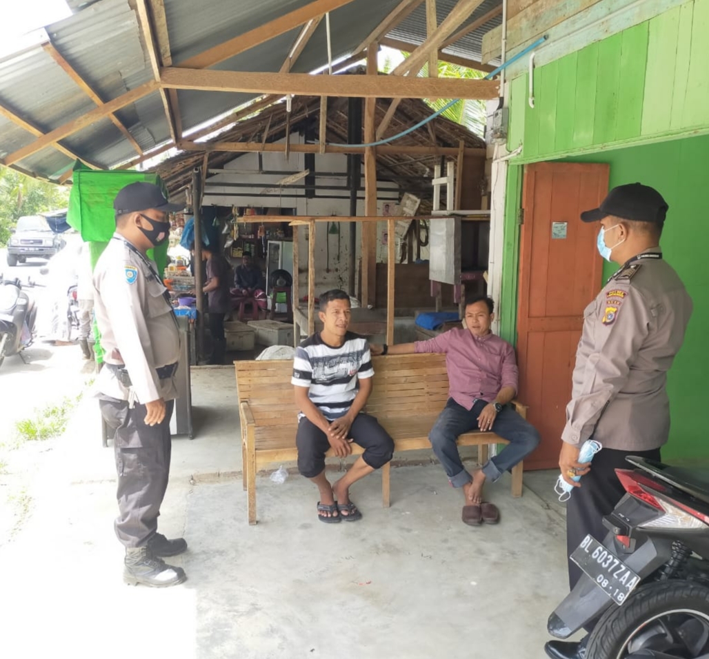 LHOKSEUMAWE – Personel Polsek Samudera melakukan sosialisasi protokol kesehatan di Gampong Lancang, Kecamatan Samudera, Aceh Utara, kegiatan tersebut dslam rangka mendukung PPKM Mikro, Jumat (4/6/2021).