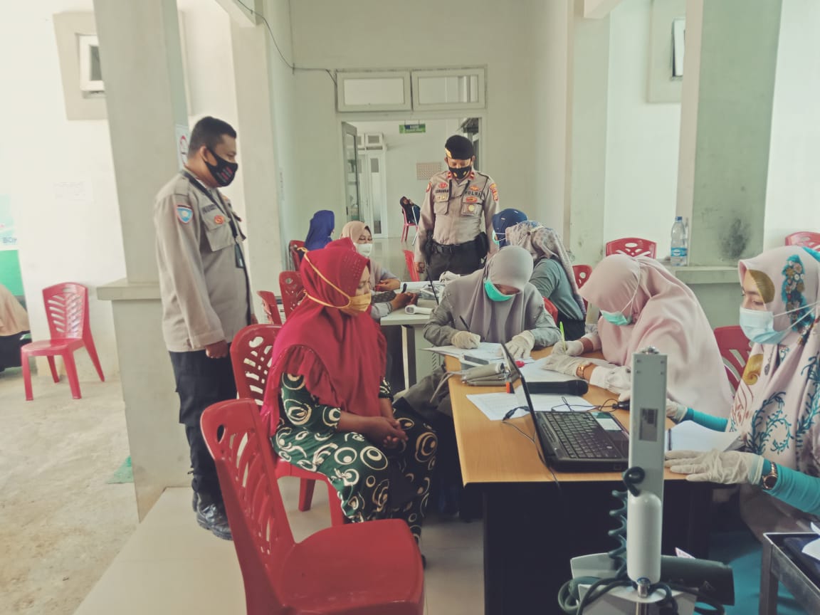 LHOKSEUMAWE – Polsek Syamtalira Bayu menyiagakan sejumlah personel di Puskesmas setempat, kehadiran personel Polisi di lokasi dimaksud guna mengamankan pelaksanaan vaksinasi massal, Sabtu (12/6/2021).