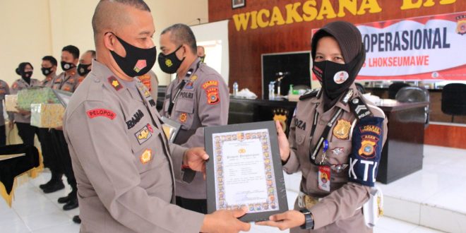 Kapolres Lhokseumawe AKBP Eko Hartanto, S.I.K, M.H melalui Kasubag Humas Salman Alfarasi mengungkapkan, pemberian penghargaan ini sesuai salah satu program kerja Kapolri tentang Reward dan Punishment. Untuk itu, semua anggota harus selalu semangat dalam pelaksanaan tugas.