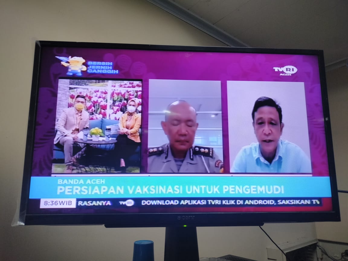” Talkshow bersama itu disiarkan TVRI untuk mensosialisasikan kesiapan Ditlantas Polda Aceh dalam melaksanakan pembinaan dan penyuluhan vaksinasi kepada pengemudi kendaraan baik bus, truk, becak dan lainnya, ” ucap Dirlantas.