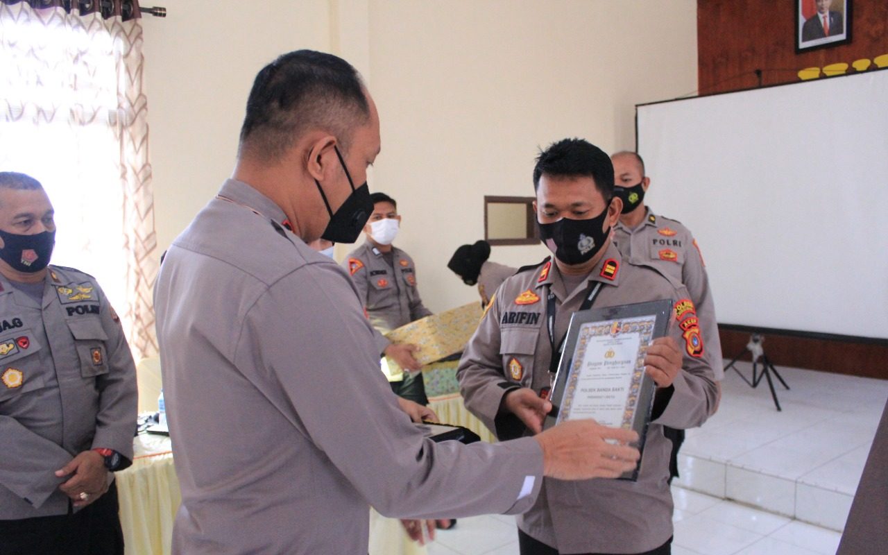 Piagam penghargaan kepada tiga Polsek yang berprestasi tersebut diserahkan langsung Kapolres Lhokseumawe AKBP Eko Hartanto SIK MH di Aula Rupatama Wicaksana Laghawa, Mapolres Lhokseumawe, Sabtu (10/7/2021) pagi.