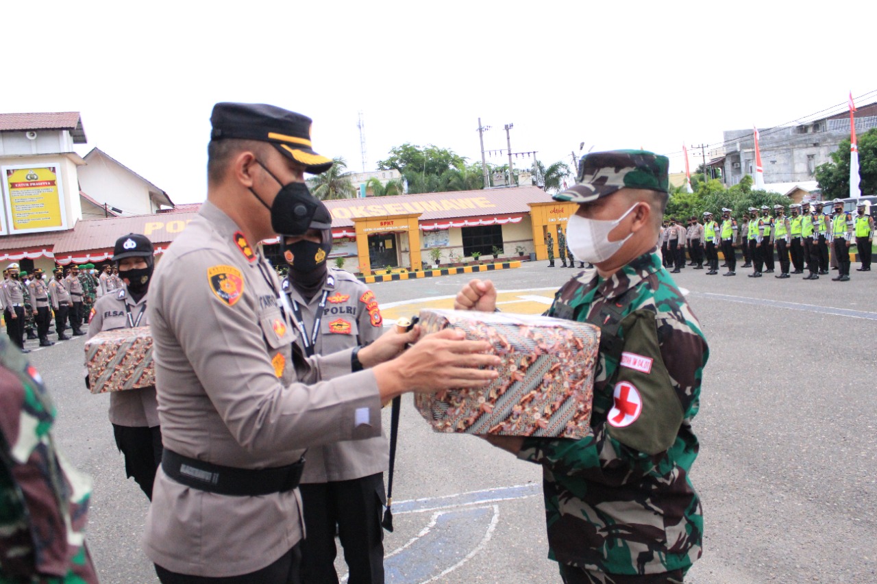 Upacara tersebut dipimpin langsung Kapolres AKBP Eko Hartanto SIK MH dan Dandim 0103/Aut, Letkol Arm Oke Kistiyanto SAP di lapangan Satya Haprabu Polres Lhokseumawe, Senin (12/07/2021) pagi.