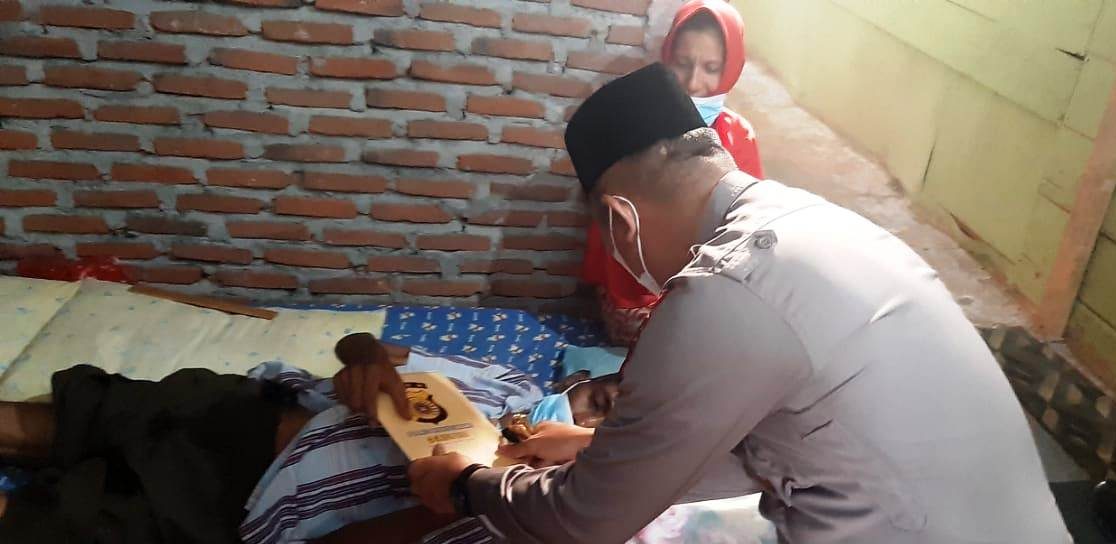 LHOKSEUMAWE – Kapolres Lhokseumawe, AKBP Eko Hartanto, SIK, MH menjenguk salah seorang warga yang sedang sakit di Gampong Hagu Selatan, Kecamatan Banda Sakti, Kota Lhokseumawe, Kamis (8/7/2021). Selain itu, Kapolres juga menyerahkan bantuan dari program “Kue Surga”.