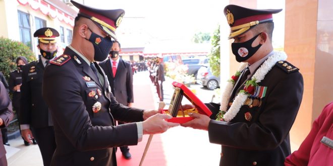 Kapolres Lhokseumawe AKBP Eko Hartantanto, S.I.K, M.H dalam sambutannya mengatakan, tradisi ini untuk memberikan semangat, motivasi dan kebanggan bagi personil yang purba bakti.
