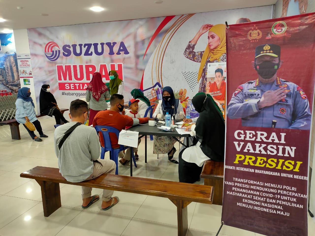 LHOKSEUMAWE – Personel Polsek Banda Sakti, Polres Lhokseumawe terus melakukan sosialisasi kepada para pengunjung Suzuya Mall Lhokseumawe dan di lokasi itu pula terdapat gerai Vaksin Presisi.