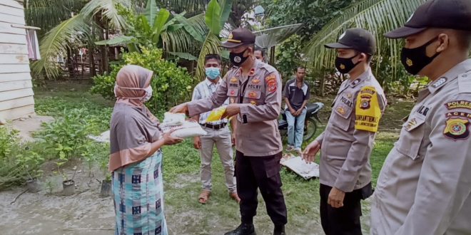 LHOKSEUMAWE – Personel Polsek Jajaran Polres Lhokseumawe mengantar langsung bantuan kepada warga kurang mampu dan terdampak Covid-19 di wilayah hukum Polsek Dewantara dan Meurah Mulia, Kamis (22/7/2021).