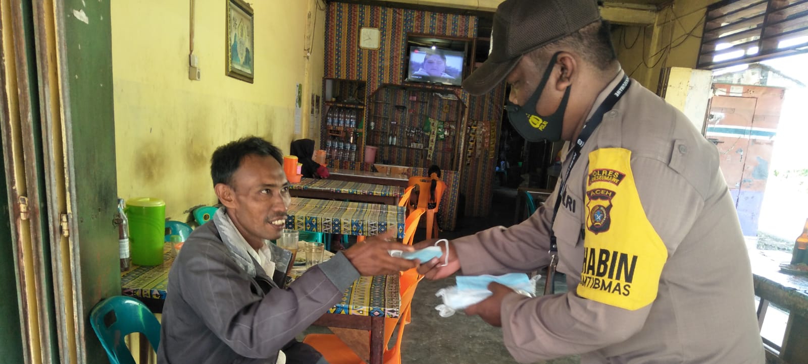 LHOKSEUMAWE – Polsek Simpang Keuramat, Polres Lhokseumawe melaksanakan pembagian masker di tempat umum di wilayah tersebut, Kamis (12/8/2021), kegiatan ini guna mencegah penyebaran Covid-19.