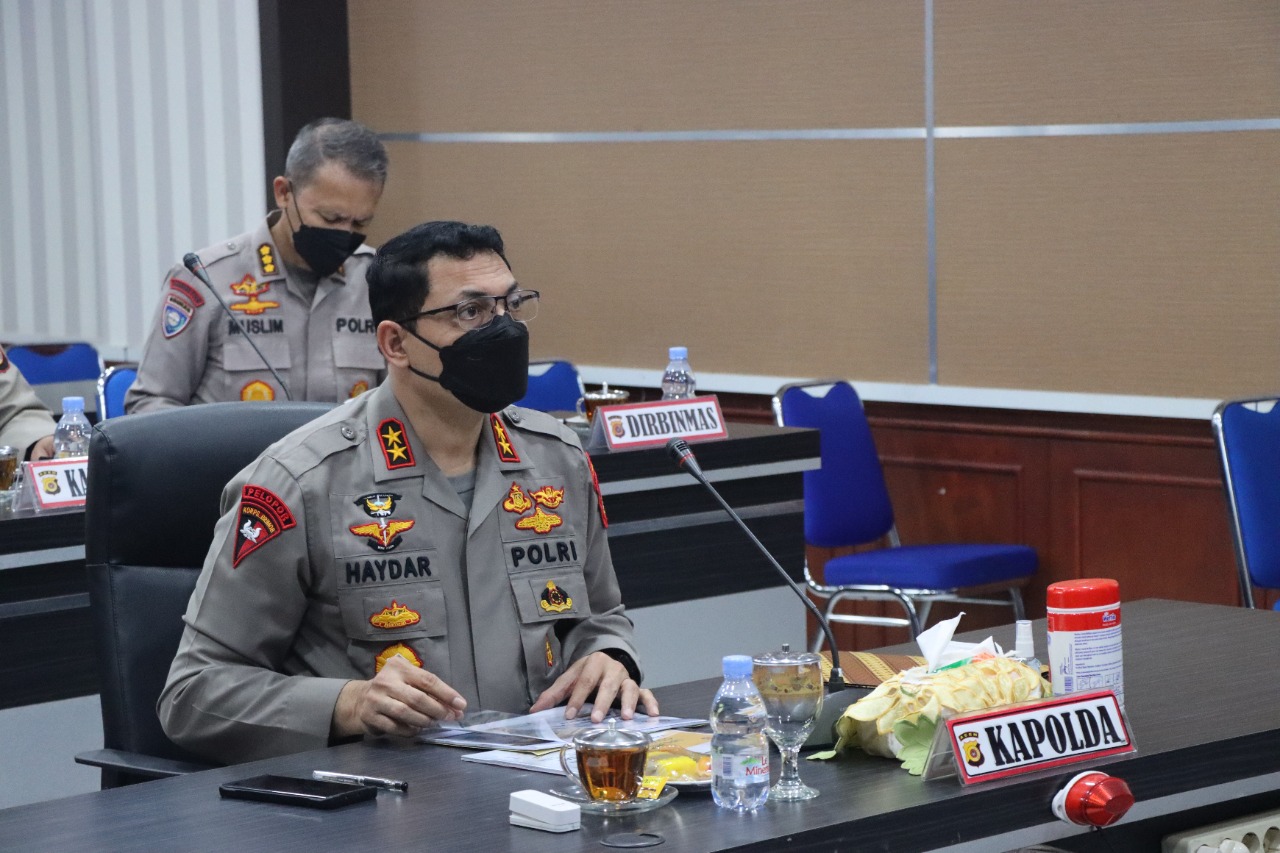 Kapolda Aceh Irjen Pol. Drs. Ahmad Haydar, S. H., M. M, mengikuti rapat internal yang digelar secara virtual bersama Wakapolri dari Mabes Polri, Kamis (26/8/21).