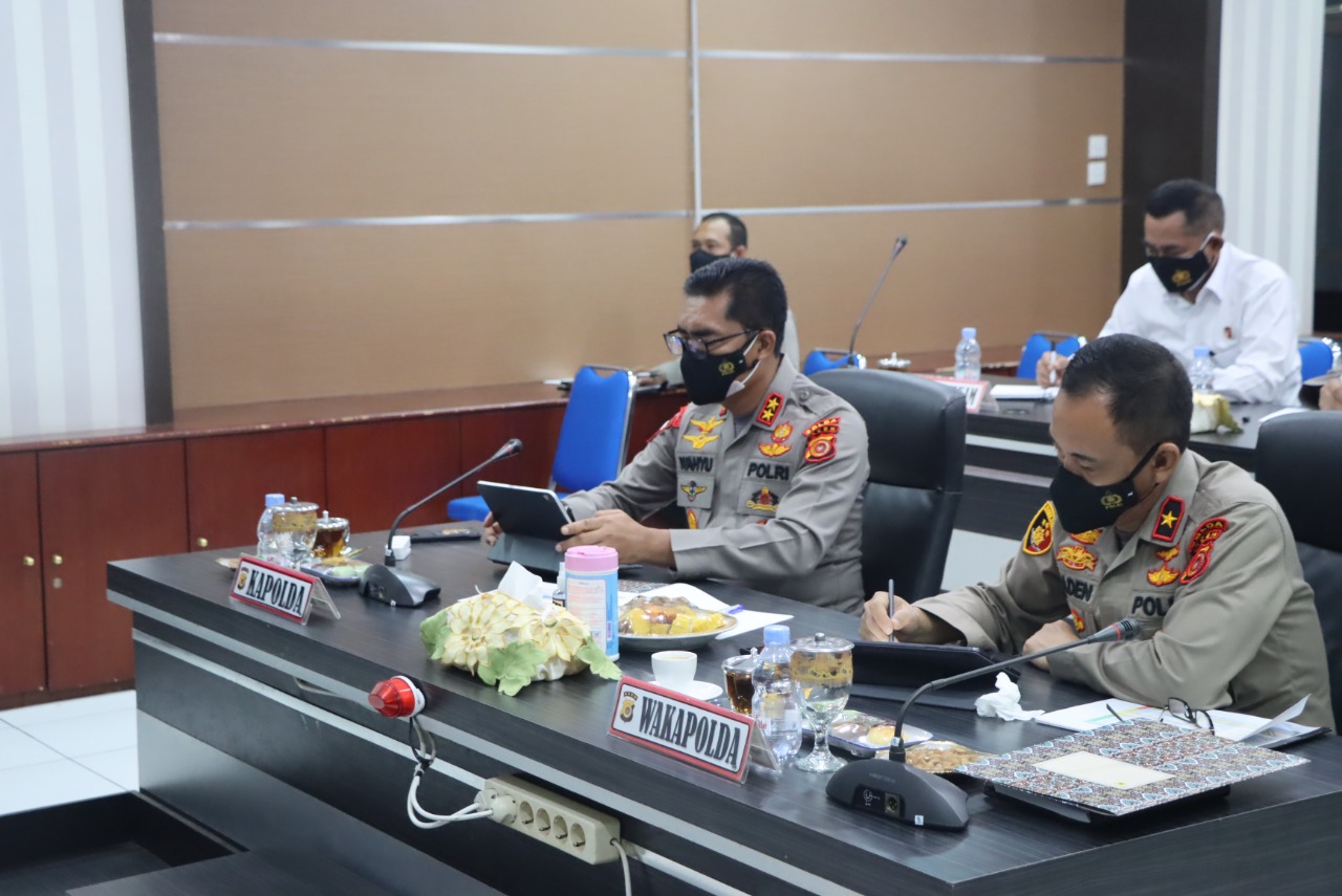 Kapolda Aceh Irjen Pol. Drs. Wahyu Widada, M. Phil, mengikuti vicon bersama Kapolri Jenderal Polisi Drs. Listyo Sigit Prabowo, M. Si, Rabu (4/8/21).