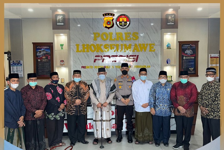 LHOKSEUMAWE – Kapolres Lhokseumawe AKBP Eko Hartanto SIK MH menerima kunjungan Ketua Pengurus Wilayah Nahdlatul Ulama (NU) Aceh, Tgk H Nuruzzahri Yahya atau yang akrab disapa Waled NU di Mapolres Lhokseumawe, Kamis (26/8/2021).