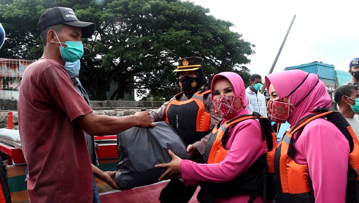 BANDA ACEH – Dalam rangka Hari Kesatuan Gerak Bhayangkari (HKGB) ke 69 dan Hari Jadi Polwan Republik Indonesia ke 73, PD. Bhayangkari Aceh dan Polwan Polda Aceh membagikan puluhan sembako untuk para nelayan di Banda Aceh.