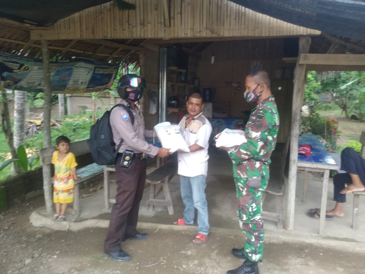 LHOKSEUMAWE – Di masa pandemi COVID-19, personel Sub Sektor Banda Baro, Polres Lhokseumawe mengantarkan bantuan kepada warga terdampak COVID-19 hingga ke pelosok Aceh Utara, Selasa (3/7/2021).
