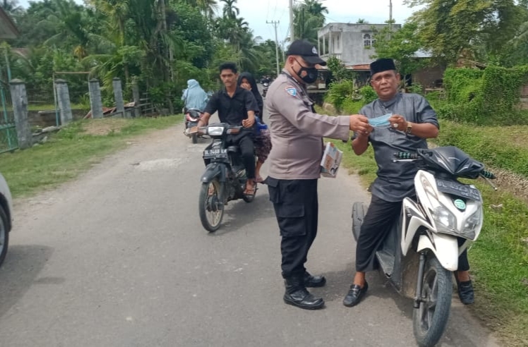 LHOKSEUMAWE – Personel Polsek Samudera terus mengingatkan warga Desa Blang Peuria, Kecamatan Samudera, Aceh Utara agar selalu memakai masker saat melakukan aktivitas di luar rumah.