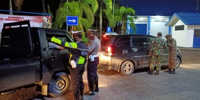 ACEH TAMIANG – Di pos penyekatan PPKM Mikro Covid-19 di Desa Sumadam Kecamatan Kejuruan Muda, Aceh Tamiang, pendatang dari Sumatera Utara masuk ke wilayah Provinsi Aceh diperiksa lagi oleh petugas gabungan, Minggu (22/8/21) malam.