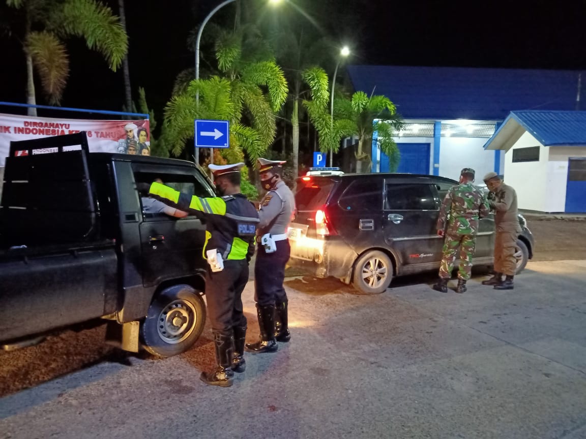 ACEH TAMIANG – Di pos penyekatan PPKM Mikro Covid-19 di Desa Sumadam Kecamatan Kejuruan Muda, Aceh Tamiang, pendatang dari Sumatera Utara masuk ke wilayah Provinsi Aceh diperiksa lagi oleh petugas gabungan, Minggu (22/8/21) malam.