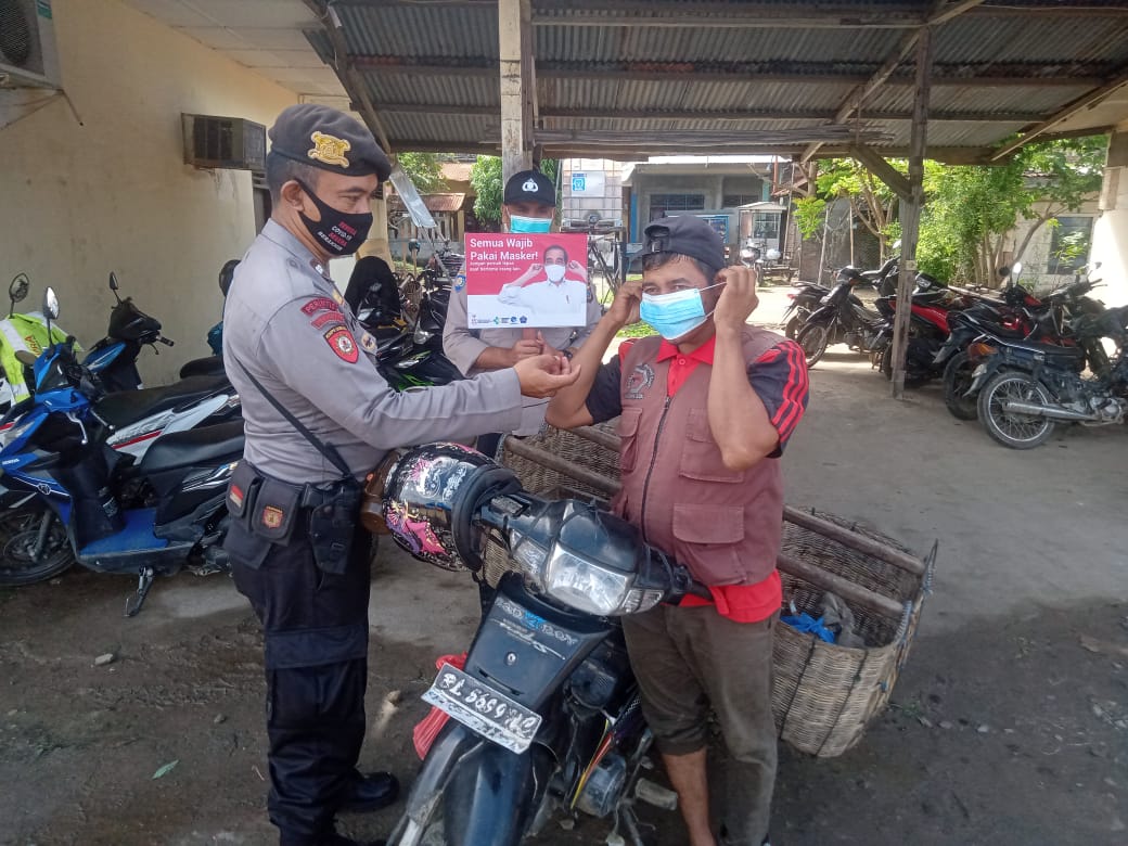 Selain sosialisasi, sebut Kapolsek, dalam kegiatan tersebut personel juga membagikan masker kepada para pedagang dan masyarakat pembeli. “Saya himbau tetap pakai masker yang telah diberikan saat beraktivitas di luar rumah,” pintanya.