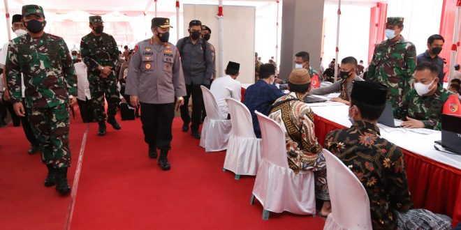 JAKARTA – Panglima TNI Marsekal Hadi Tjahjanto dan Kapolri Jenderal Listyo Sigit Prabowo meninjau vaksinasi di Pondok Pesantren (Ponpes) Tebu Ireng, Jombang. Kegiatan tersebut juga dilaksanakan serentak di 41 Ponpes se-Jawa Timur, pada Rabu (25/8/2021).